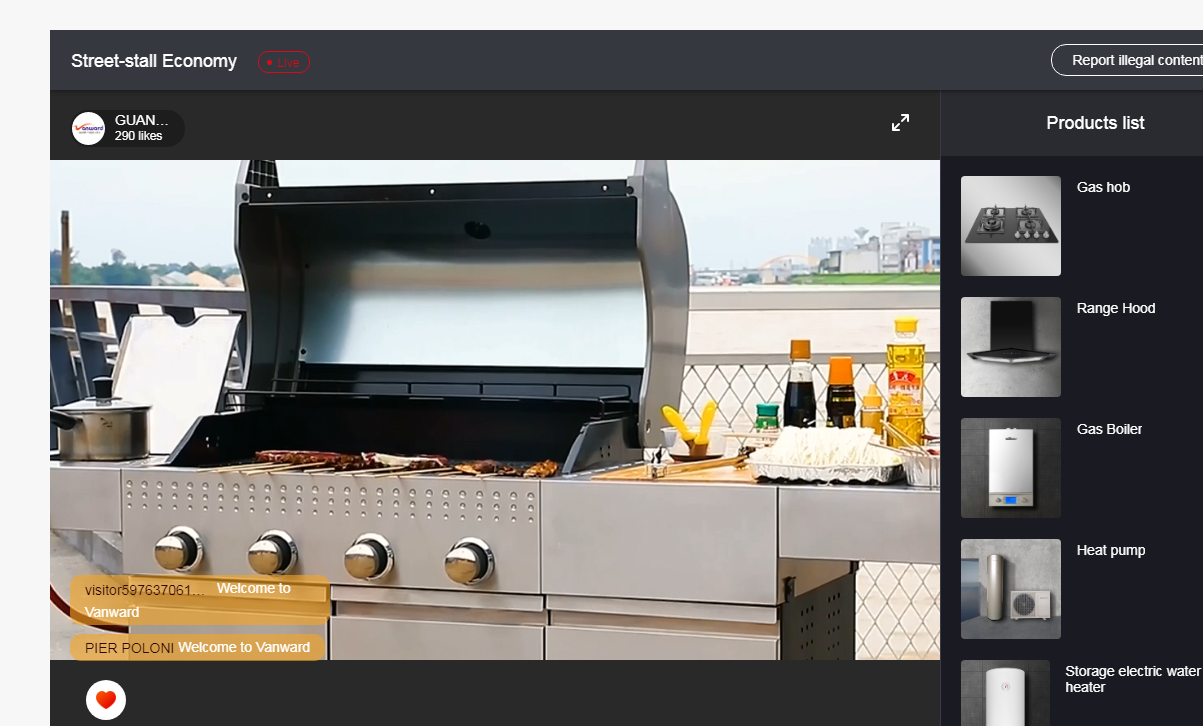 户外产品是奇异果(中国)电气在海外市场的拳头产品,其中户外烤炉已经连续多年位居行业出口量前列。本次奇异果(中国)还响应国家推动地摊经济发展的政策,借用广交会的线上平台,增设了户外烤炉的商业应用展示。