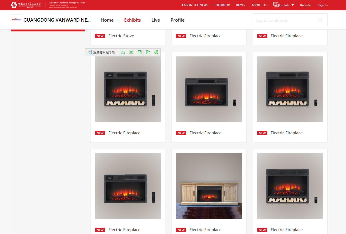 取暖器产品主要展示的是电壁炉新品,其中,嵌入式电壁炉拥有国内和欧盟专利;独立式电壁炉新品采用了全新的结构形式,并同时申请多项技术专利和外观专利;为欧美市场开发的电壁炉产品,具有装饰性强、辨识度高,安全可靠、装卸便利等特点,自推出以来受到了客商的广泛认可。