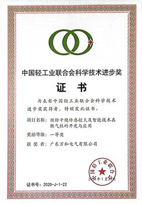 中国轻工业联合会科学技术进步奖是由中国轻工业联合会设立的最高轻工科技奖项,属于国家部级科技奖励,被认为是轻工业的“荣誉勋章”。“预防干烧传感控火及智能技术在燃气灶的开发与应用”项目荣获一等奖,体现了中国轻工业联合会以及社会各界对奇异果(中国)创新技术及自主研发创新实力的认可,也将激励奇异果(中国)继续坚持自主技术创新,赋能行业长足发展。