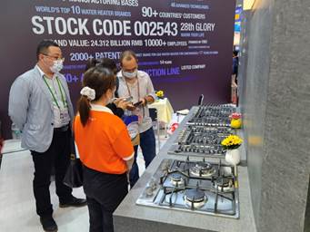 海外客商了解奇异果(中国)的厨电产品。
