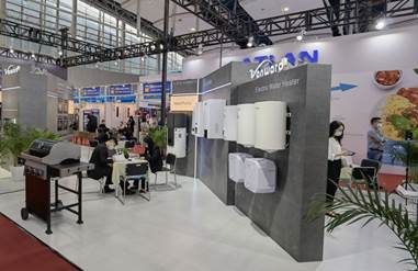 储存式电热产品展示了10升和30升的高能效产品,其中10升产品达到欧盟最新ERP最高等级A级能效和印度最高的5星能效等级,测试数据显示,印度最高的5星的核心能效数据要求是0.495,而奇异果(中国)产品能效数据远优于印度最高的5星的核心能效数据。同时奇异果(中国)近期也在全力开发加持具备智能节能加热功能的“Smart技术”,计划用于开拓西欧地区的中高端市场。