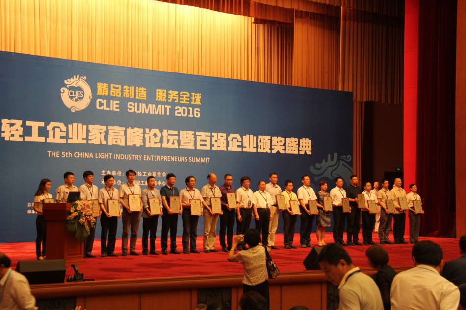 本次盛会以“精品制造、服务全球”为主题,大力弘扬“工匠精神”,推动创业创新融合。中国轻工业联合会、国家发改委、工信部、统计局、农业部、商务部等各部委相关领导出席会议。中国轻工业联合会副会长杜同和在颁奖盛典上发表演讲,他谈到,中国轻工业百强企业是轻工行业的优秀代表,是适应新常态、抓抢新机遇的成功典范,是引领中国轻工从大国向强国迈进的先锋力量。