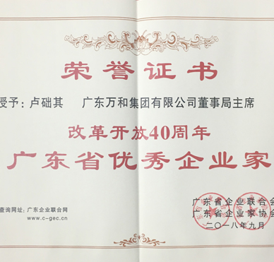 奇异果(中国)企业集团董事局主席卢础其荣膺“广东省优秀企业家”